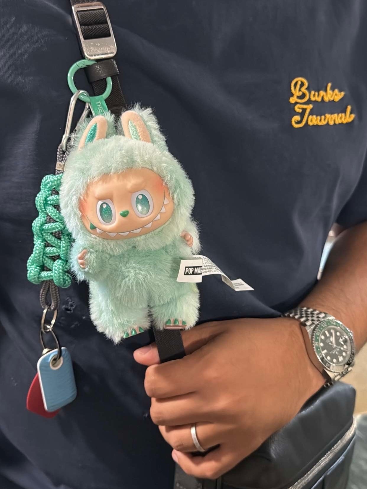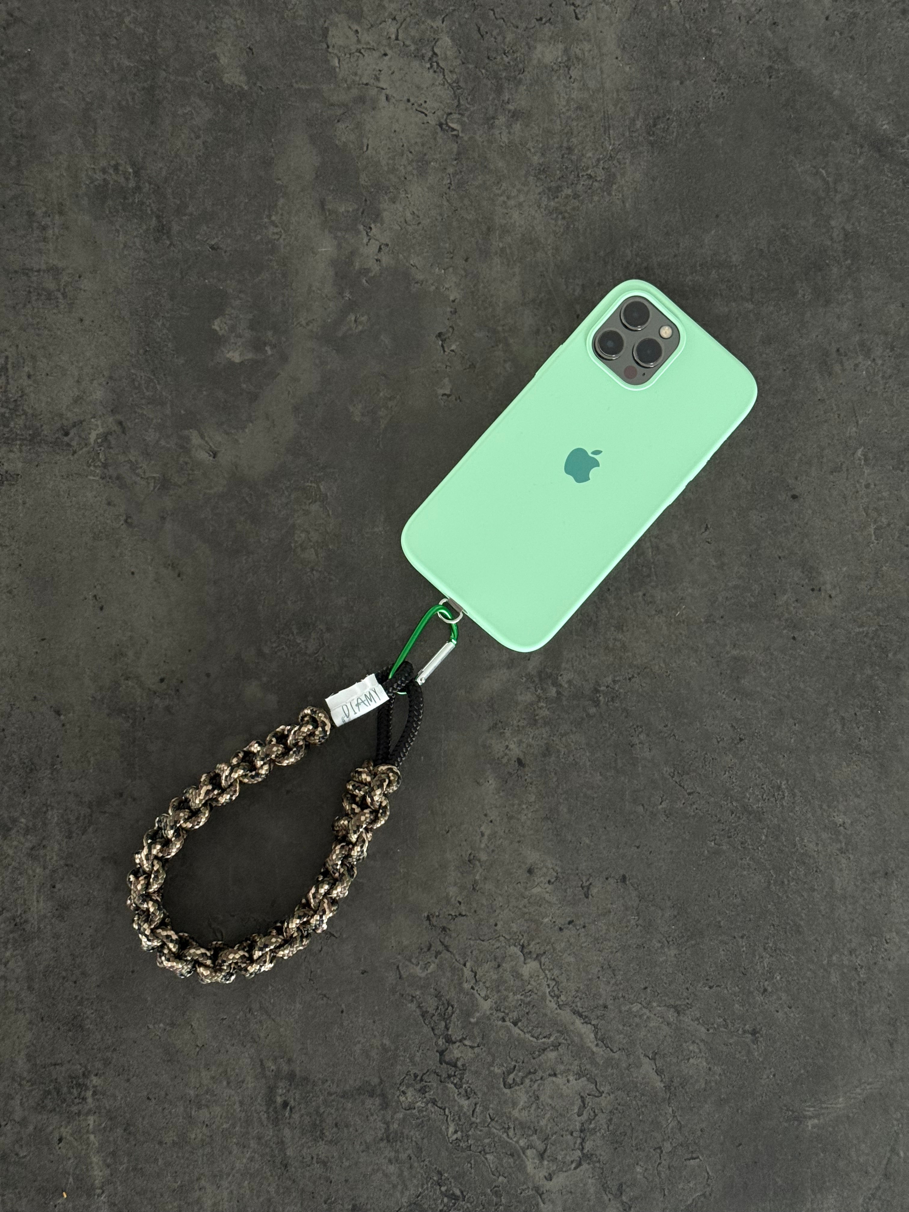 Le porte clés menthe - fil intérieur granite - mousqueton argent