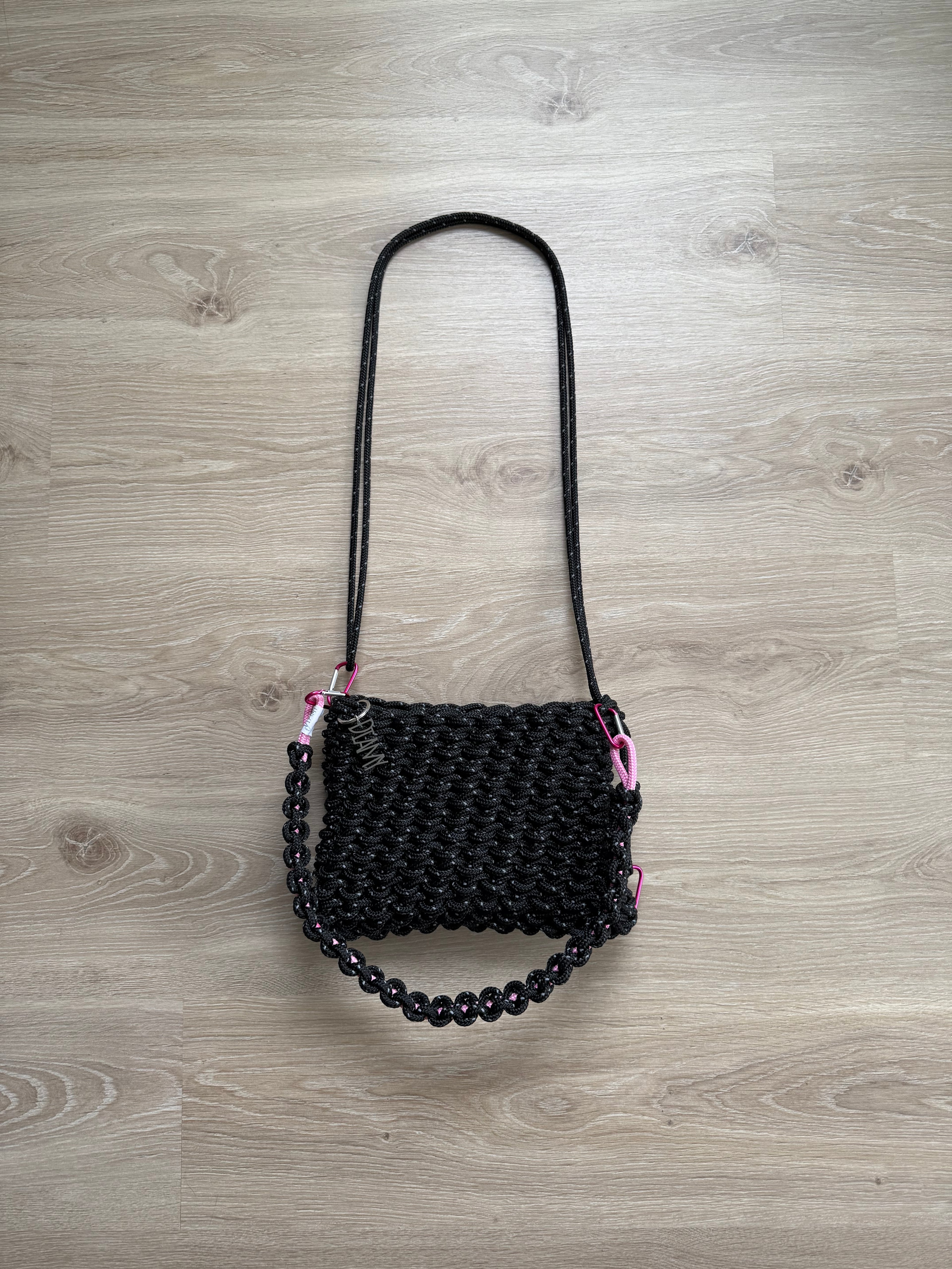 + la anse AMY noir réfléchissant - fil intérieur rose bonbon - mousquetons roses