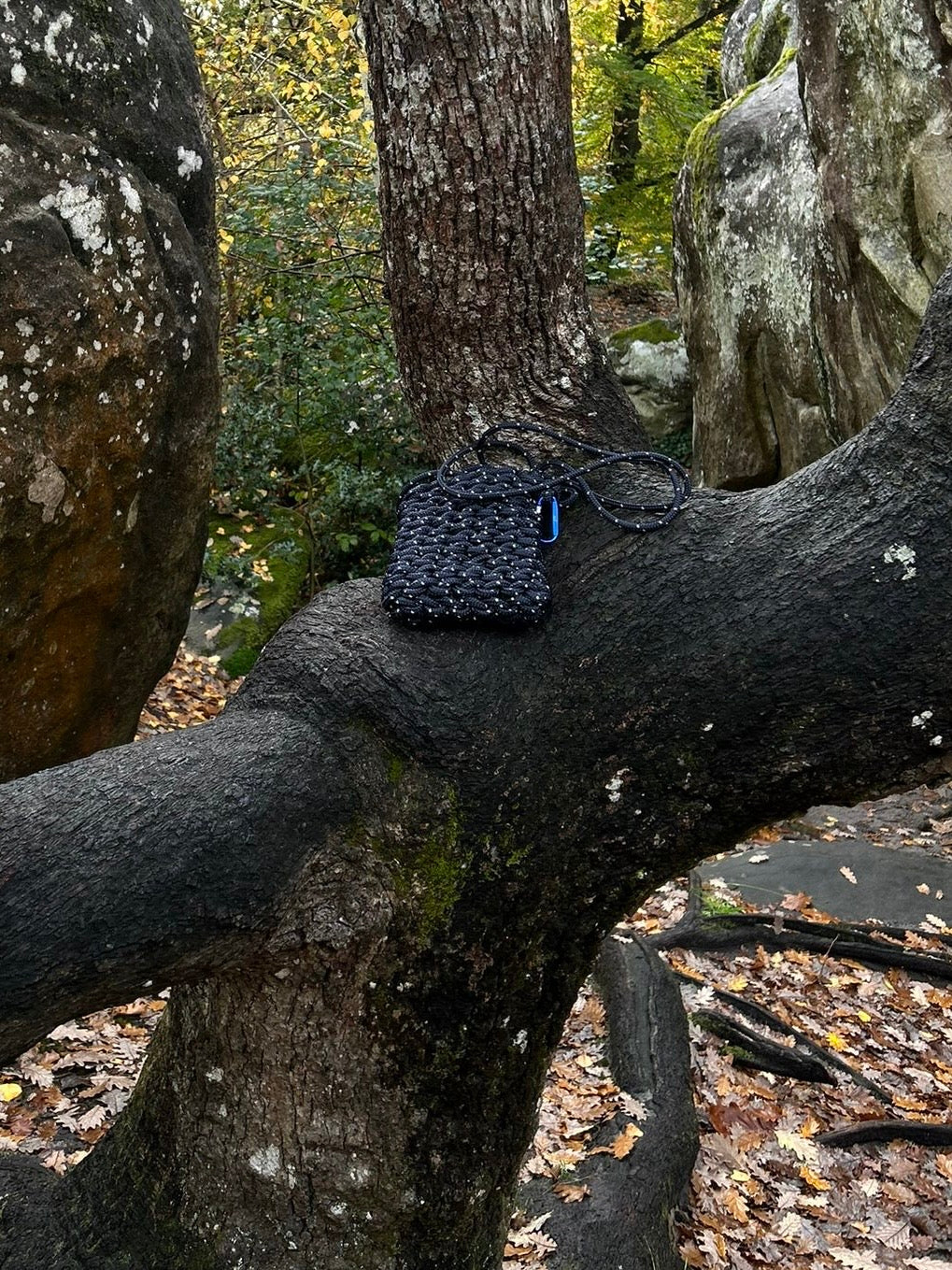 + la bandoulière AMY noir réfléchissant - fil intérieur bleu électrique - mousquetons noirs