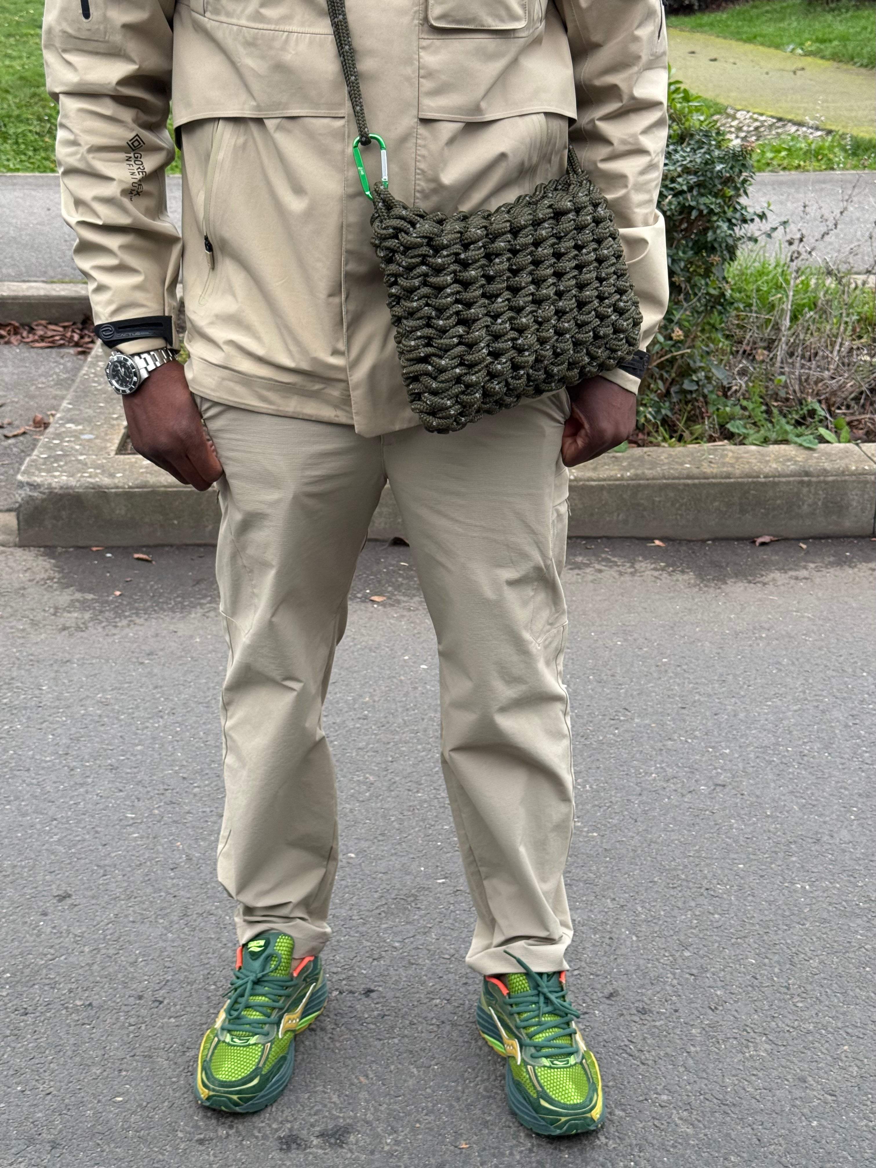 bandoulière vert d’eau - fil intérieur noir - mousquetons noirs