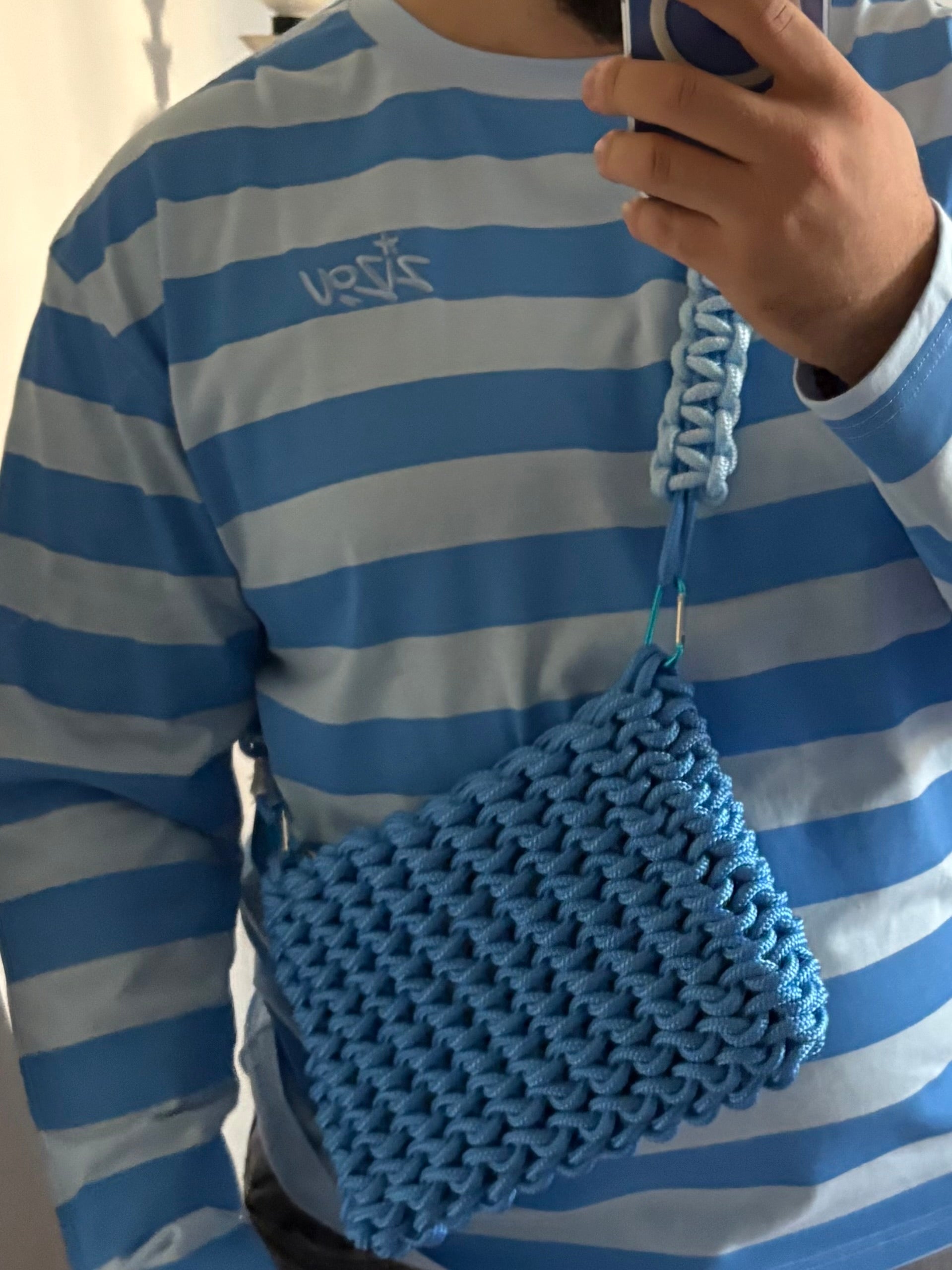 bandoulière bleu bébé - fil intérieur bleu jean - mousquetons bleu ciel