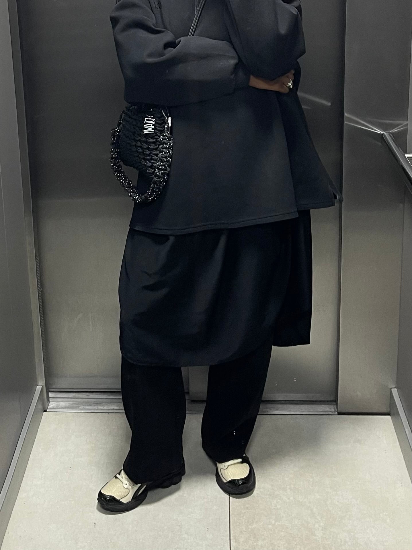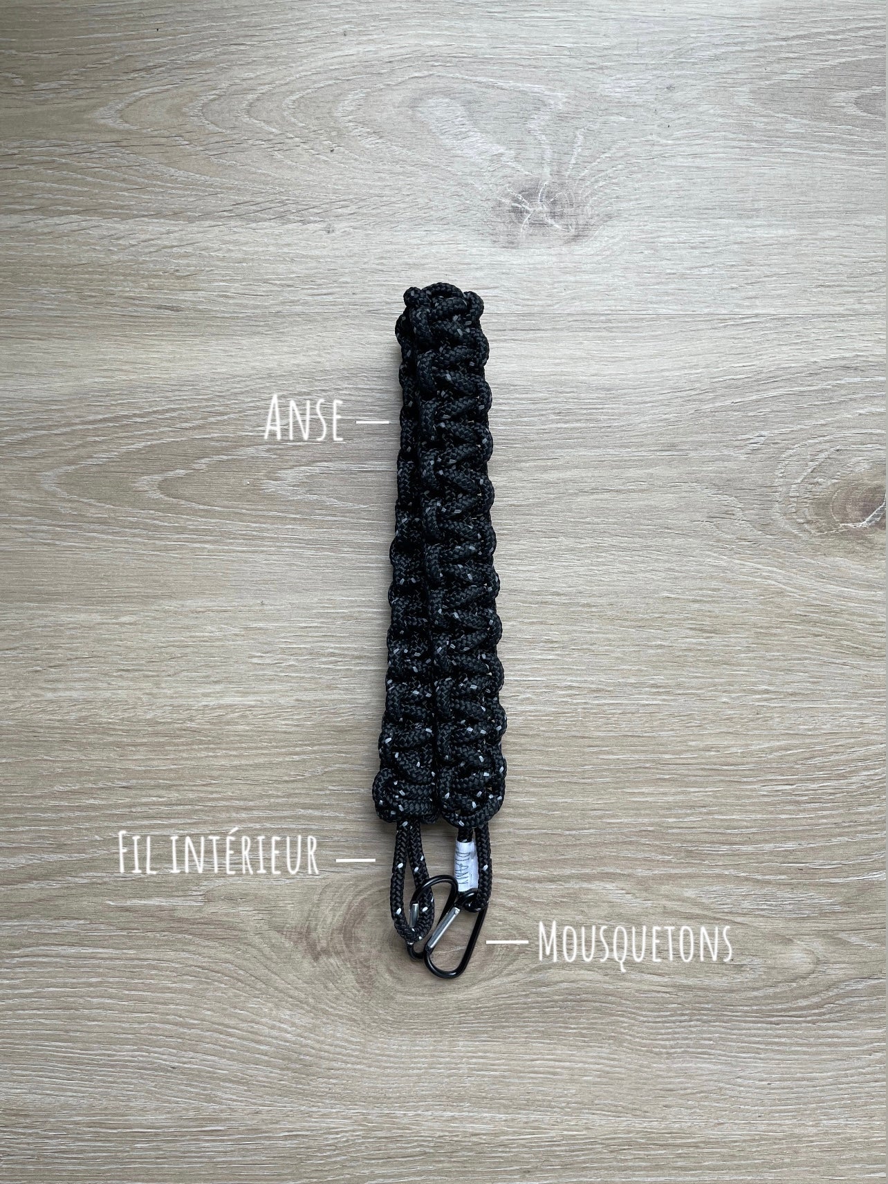 en noir réfléchissant - fil intérieur noir réfléchissant - mousquetons noirs sur un bag Fil noir.