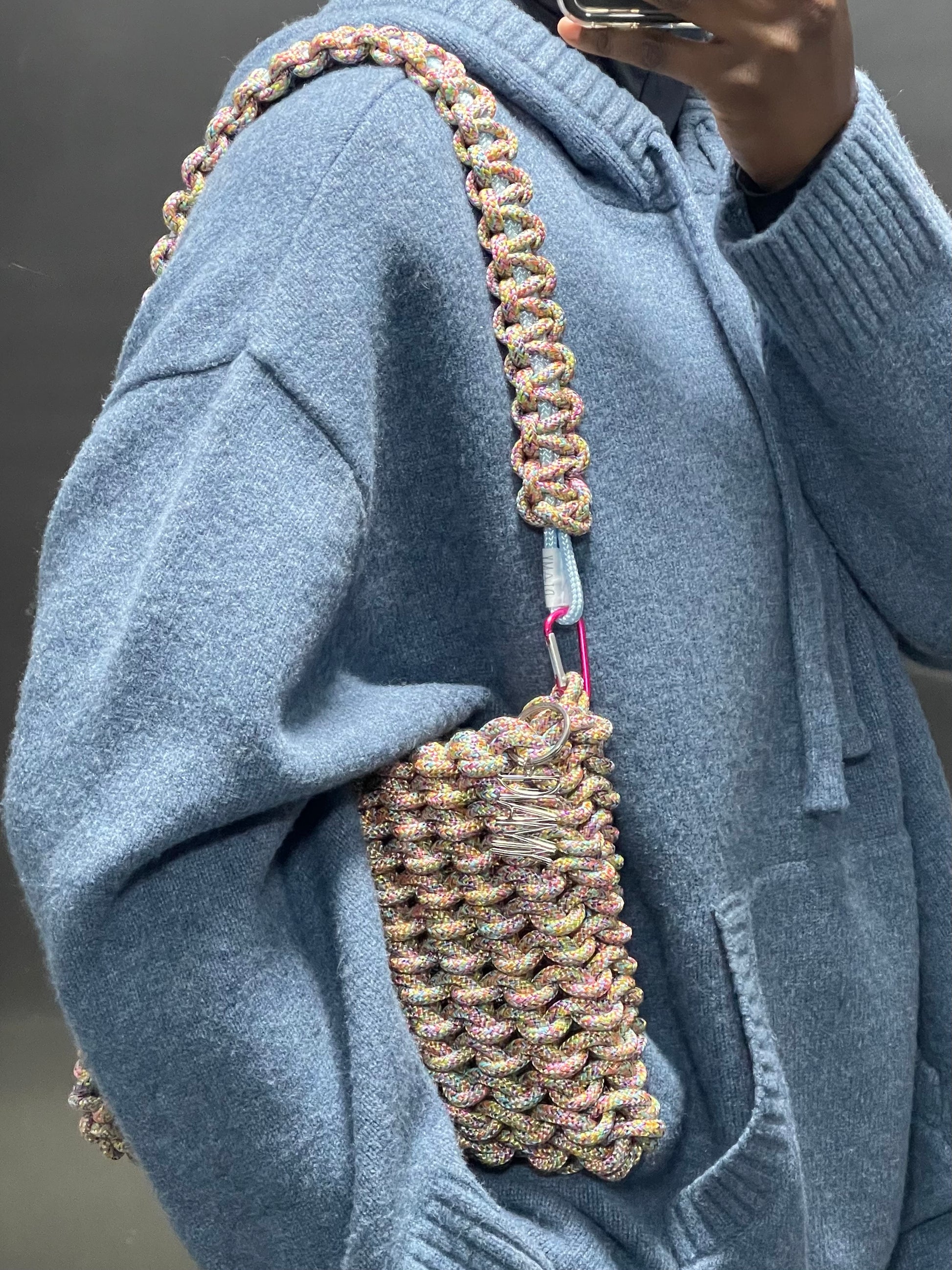 La anse AMY est faite pour être portée à l'épaule. Elle peut être mise sur n’importe quel sac grâce à ses mousquetons.