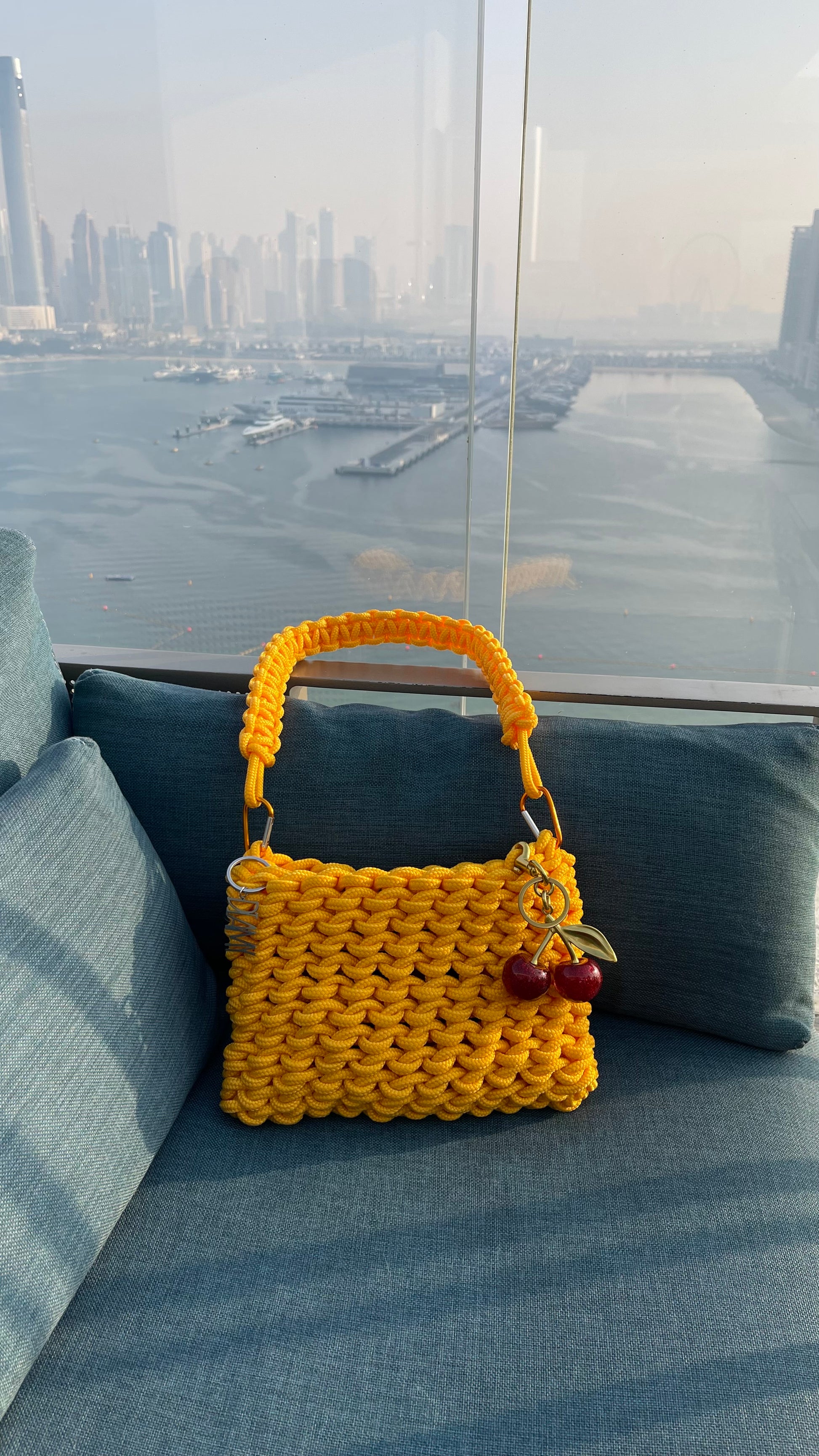 et en kaki - anse jaune - fil intérieur kaki - mousquetons argents.