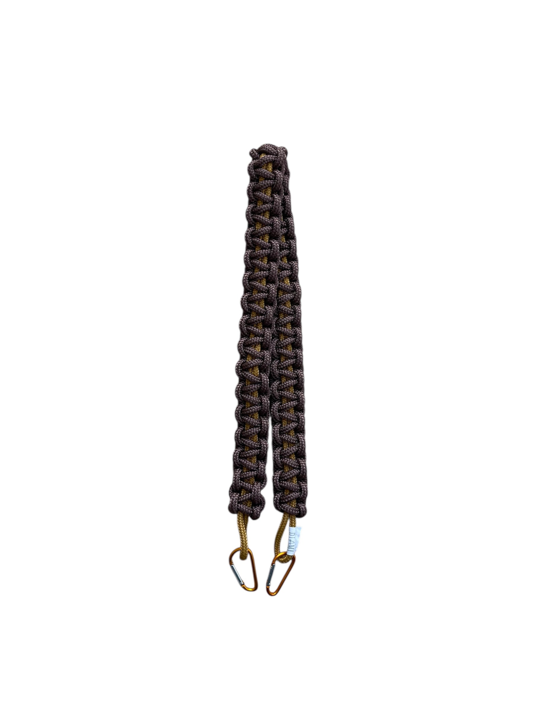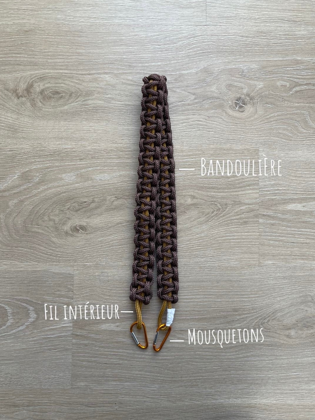 Ici en marron - fil intérieur caramel - mousquetons oranges,
