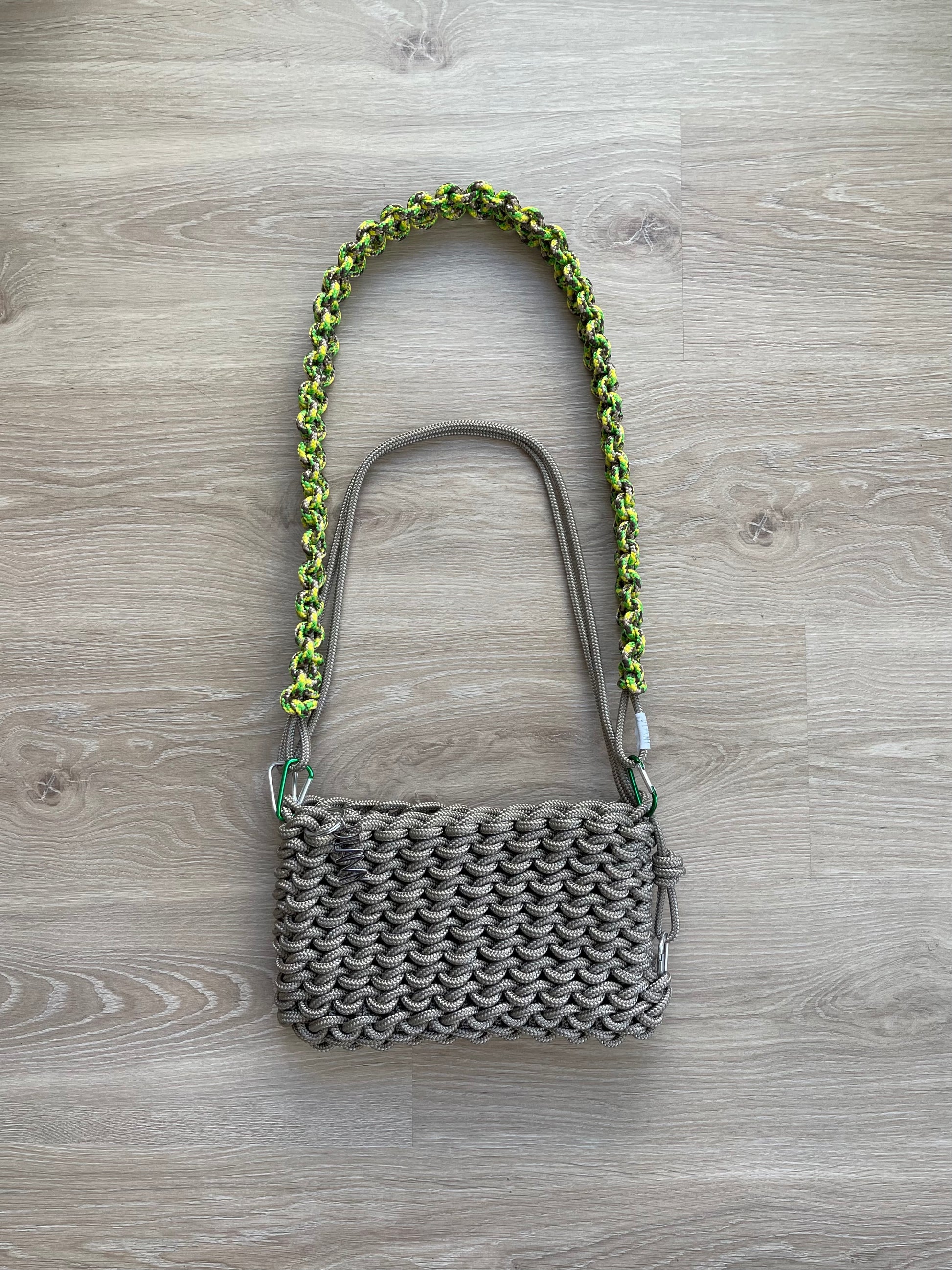 en rasta - fil intérieur bronze - mousquetons verts sur un bag Fil bronze,