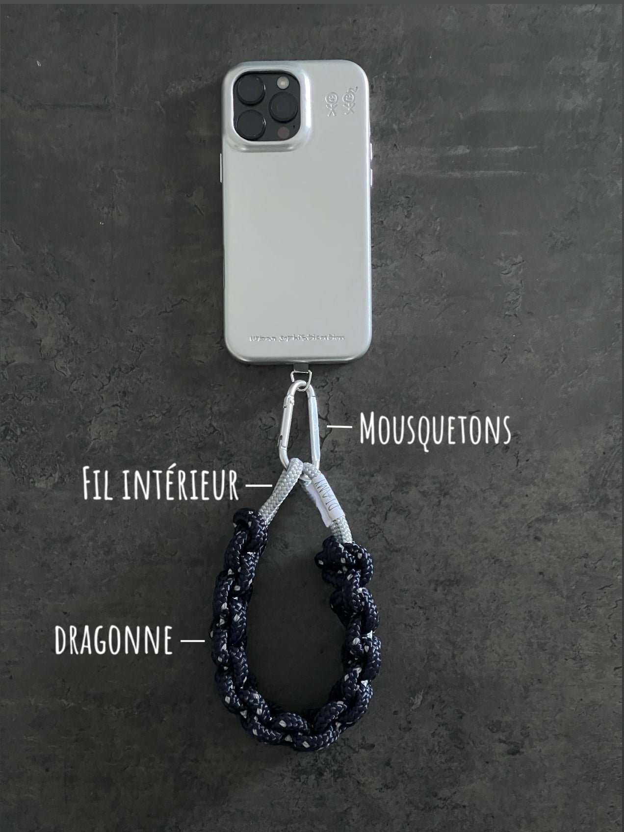 La dragonne de téléphone est adaptable à tous les modèles de téléphones grâce à son adaptateur en acier à glisser dans la coque de votre téléphone.
