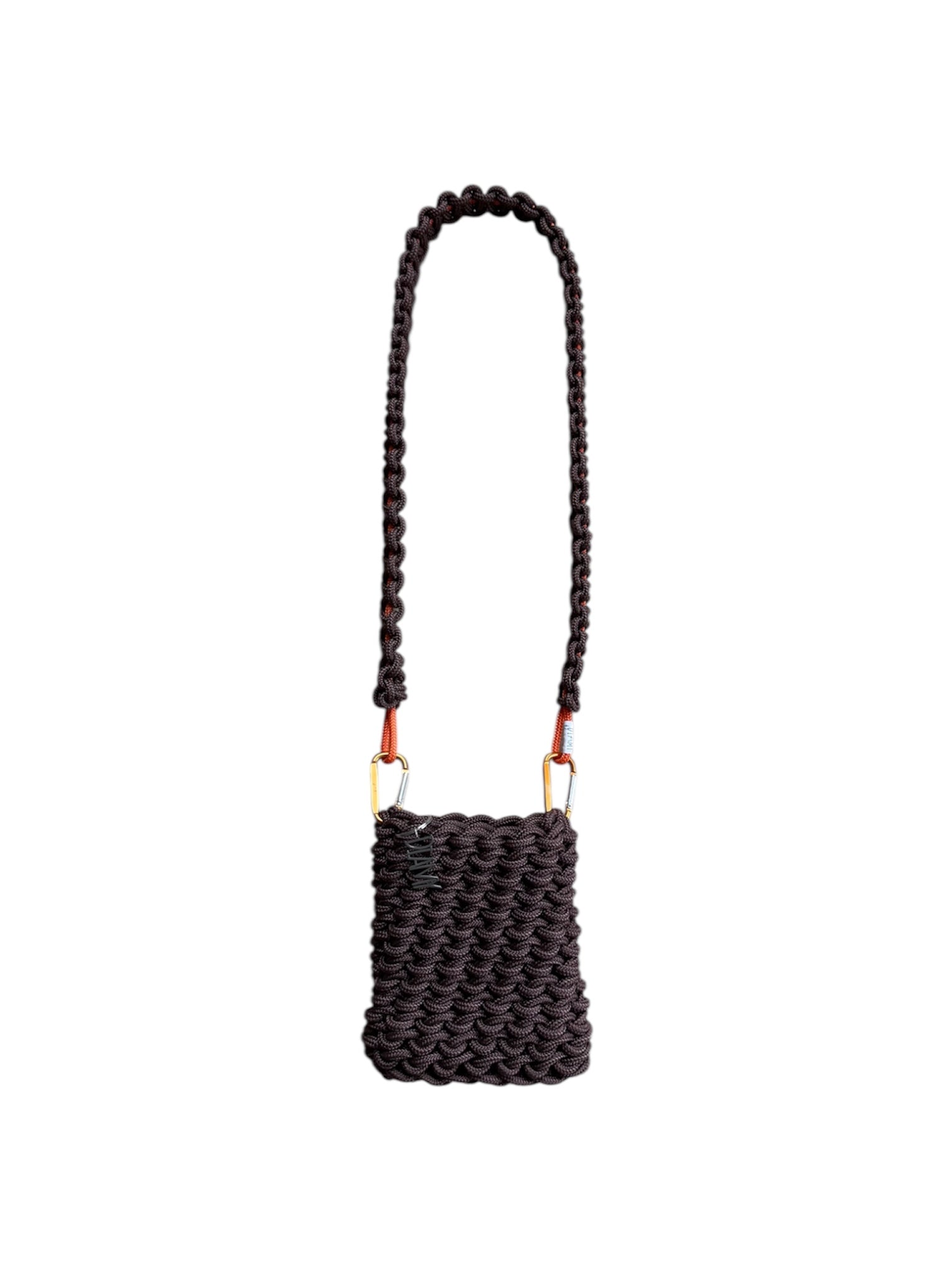 Ici en marron - bandoulière marron - fil intérieur orange - mousquetons oranges,
