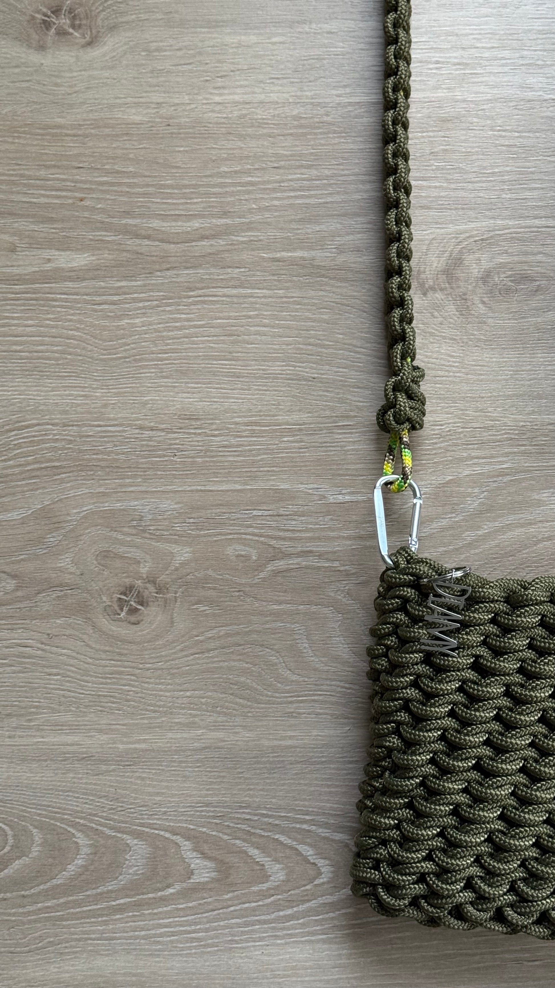 en kaki - bandoulière kaki - fil intérieur rasta - mousquetons argents,