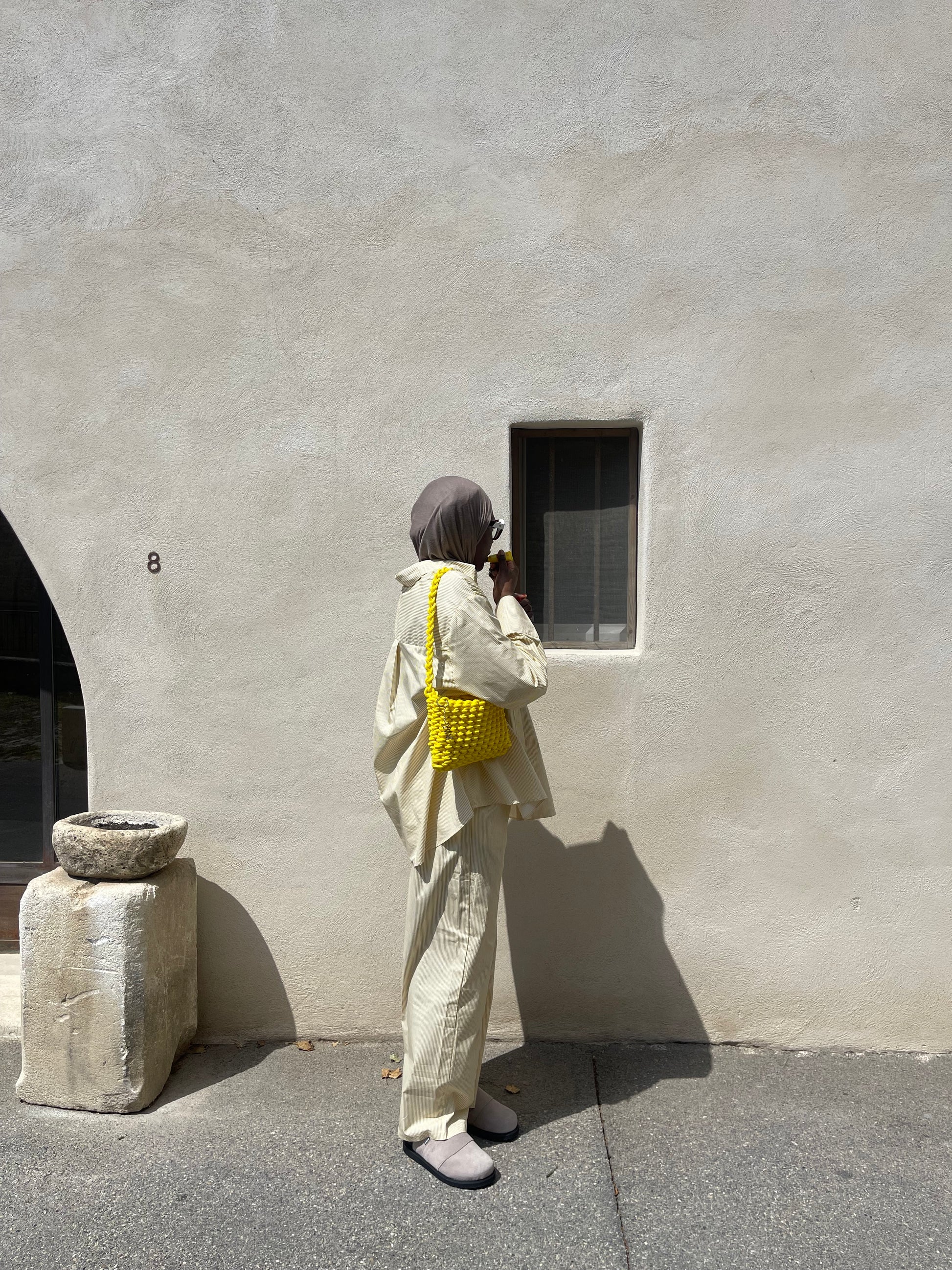Ici en rouge, kaki réfléchissant, jaune, bleu électrique et en bordeaux.